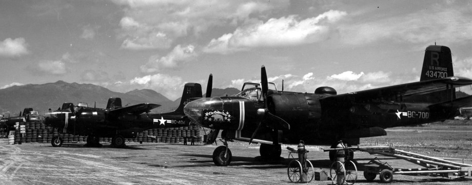 During the Korean War, three USAF bomb wings flew the venerable Douglas B-26 Invader light attack bomber in combat. They were used mainly as night intruders to hunt North Korean and Chinese vehicle convoys or trains, though in one case B-26 pilot Dick Heyman downed a PO-2 biplane, scoring one of the most unusual aerial kills of the war. They were rugged, fast, maneuverable and carried tremendous firepower, making them better suited for low altitude ground attack work than any other USAF aircraft employed during the war.