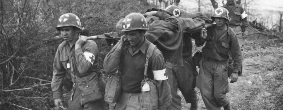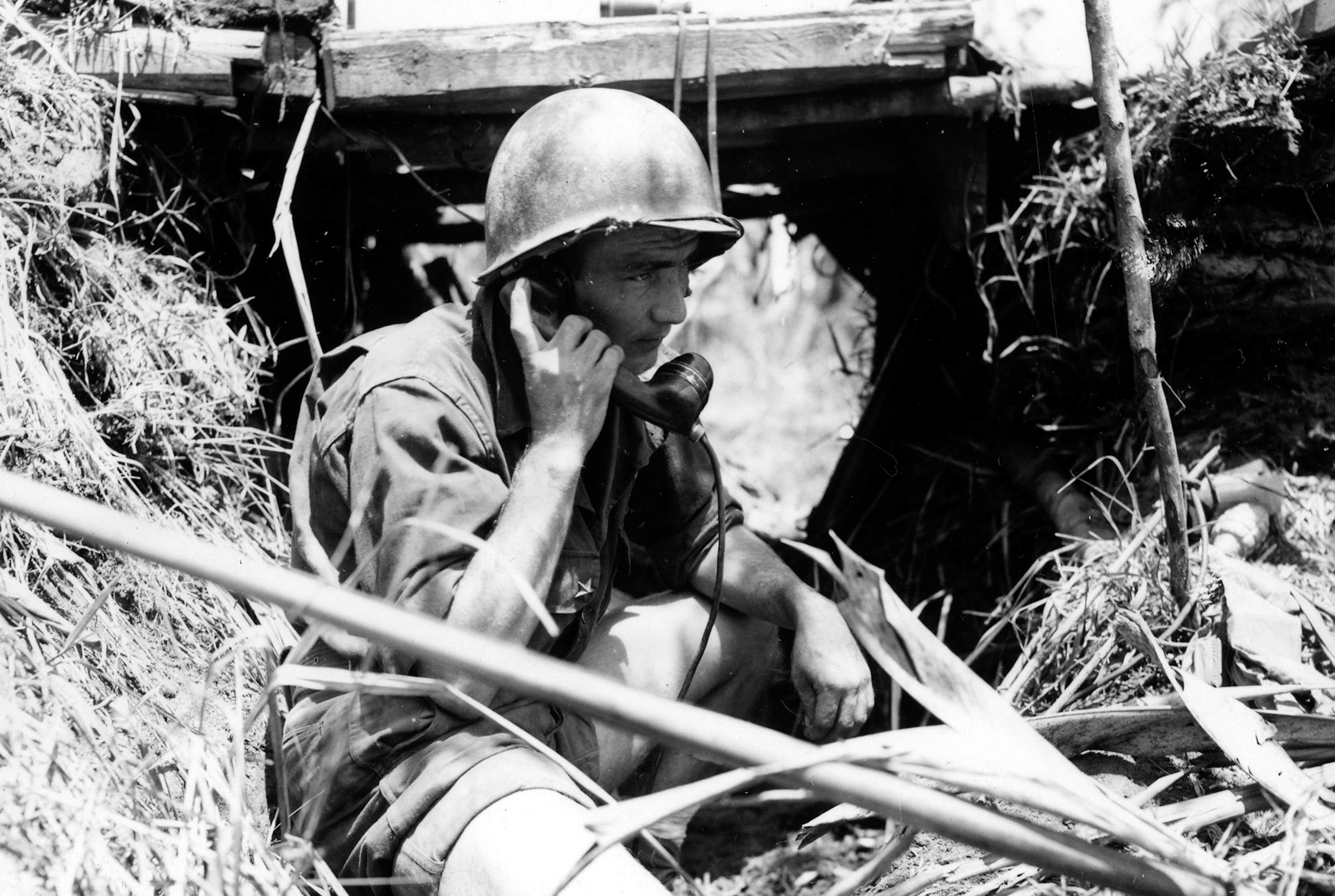 Calling for fire support, Buna, New Guinea. December 28, 1942. 127th Infantry Regiment, Wisconsin National Guard.