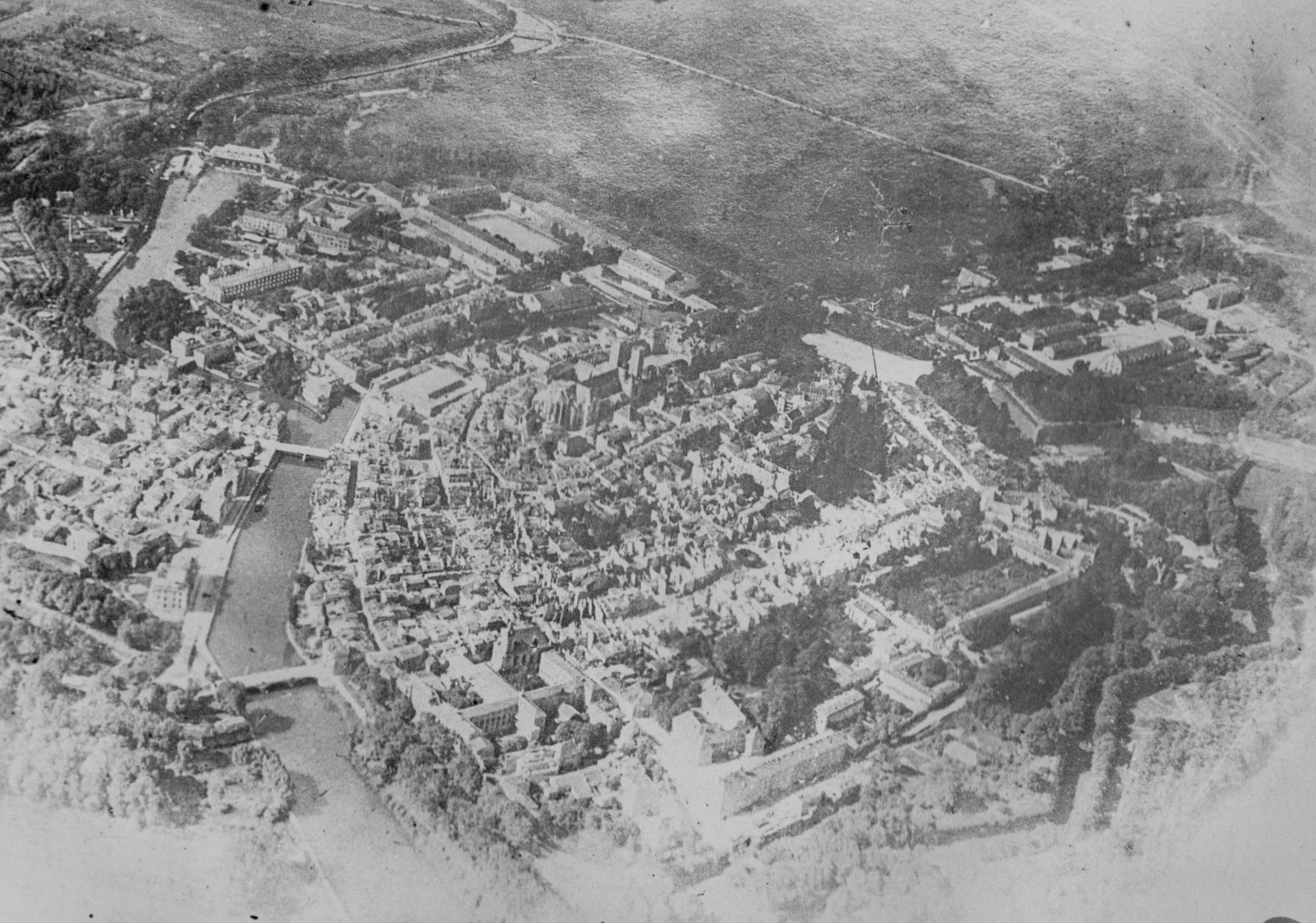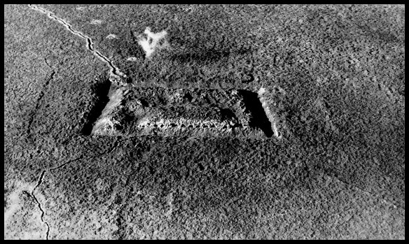 Aerial view of Fort Vaux and the thousands of shell craters that pockmarked the terrain around it.