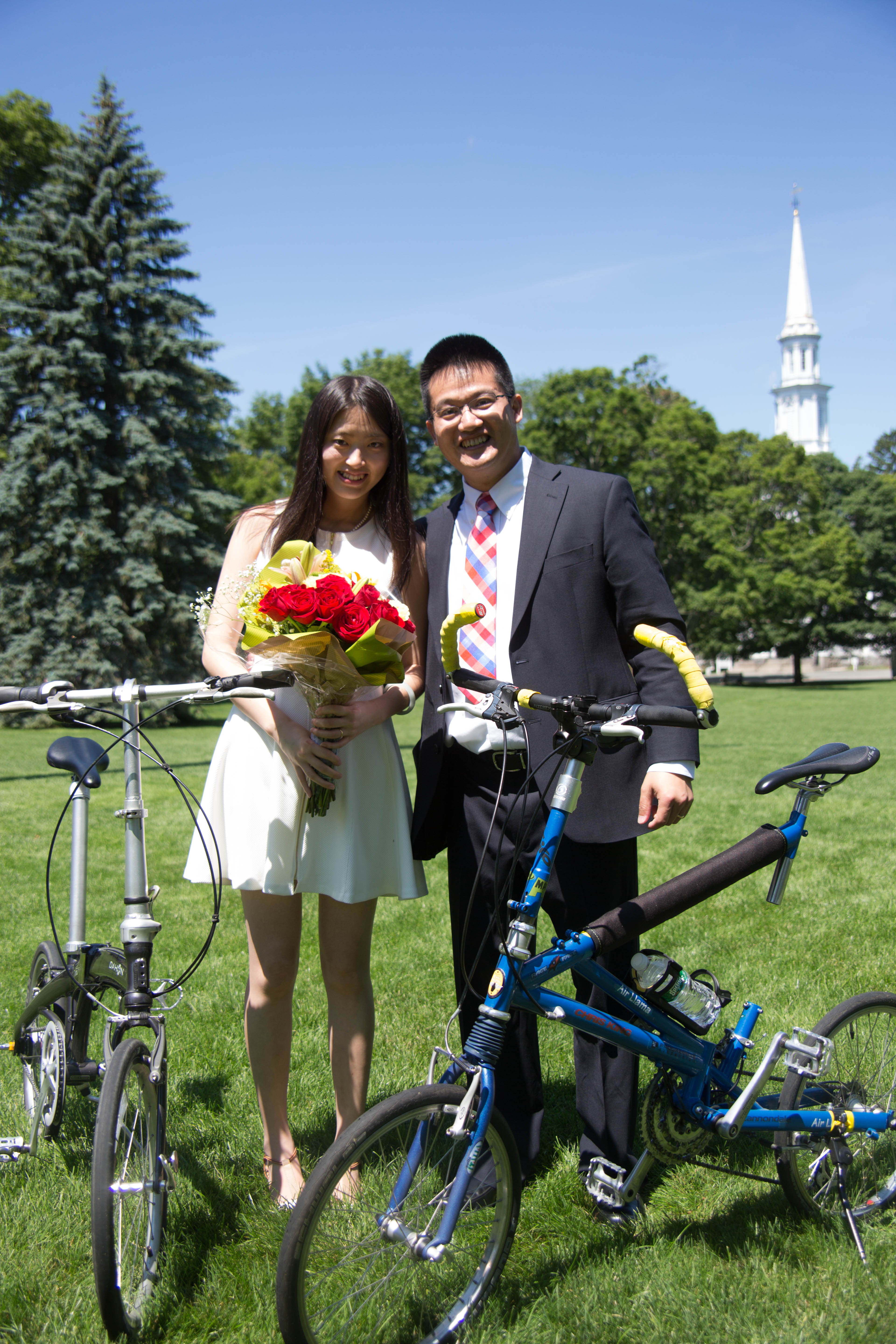 I went back to my car, grabbed my camera and approached the young couple. The bride told me their story. Both she and her groom had been born in China. They came to America as high school students, attending the Minuteman School just off Battle Road between Lexington and Concord. One day, while bicycling around the Green, they ran into each other and struck up a conversation.