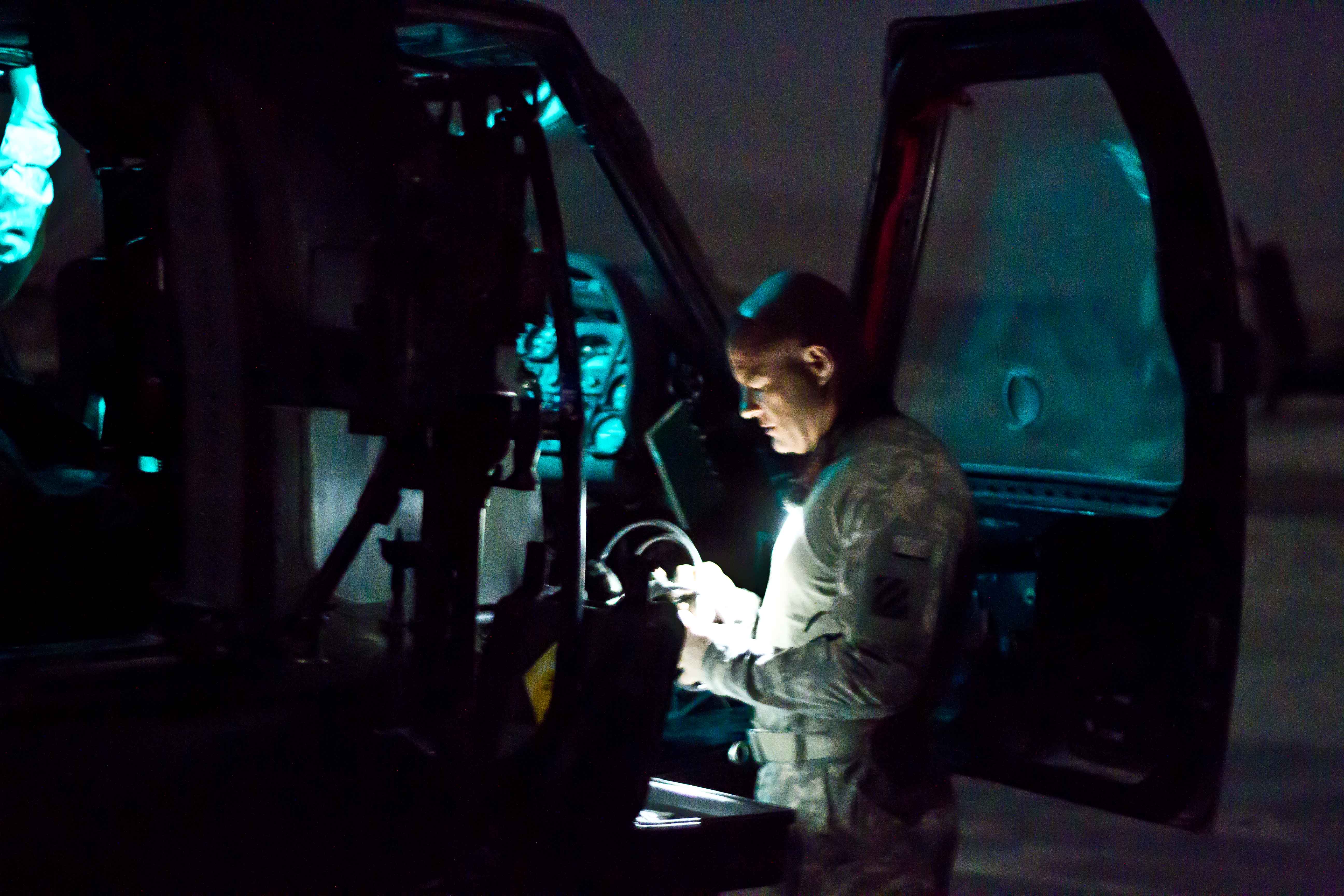 In Afghanistan, all this paid off handsomely. Instead of merely flying the AMR’s as expected, Task Force Brawler set out to gain its own slice of the battlefield.  Lieutenant Colonel Ault sought  to expand his unit’s role by  forging unlikely alliances with coalition units that could help him achieve his goal of being “exponential” on the battlefield. With the daily AMR’s covered, Ault sent out airborne patrols in Blackhawks filled with the GCP. These missions were dubbed Average Guy Engagements (AGE’s), as opposed to the COIN-standard “Key Leader Engagements. “  Using their aerial mobility, the GCP would roll around Logar Province looking for unusual activity. When they spotted something, they’d drop down, dismount the GCP and check it out. In these early patrols, the GCP made its first contacts with the local population, who had never been policed from the air like this before.  In most cases, these sudden appearances ended up generating good will. On one memorable occasion, the GCP landed next to a doctor whose car had broken down. The Americans offered to help fix his flat tire!IMG_3625