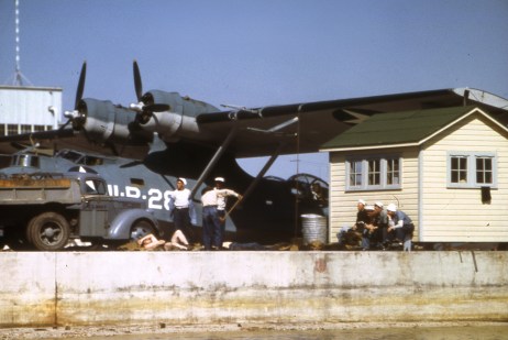 At the time, the squadron was flying the PBY-3. These were Catalina flying boats with no landing gear as the -5A models later had. The pilots would land in the water and taxi across the water towards the seaplane ramp at Ford Island. When they got in close, the beaching crew would go out and attach wheels to the side of the hull so they could get up onto the ramp.